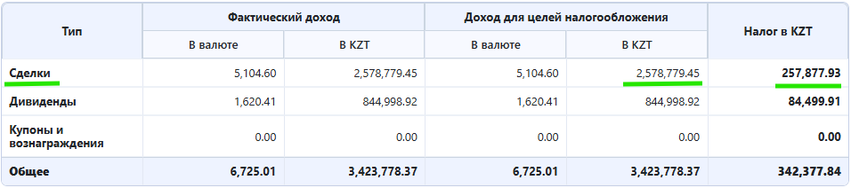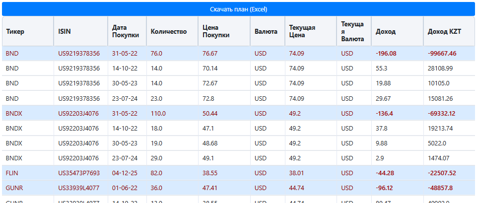 - доход/убыток по каждому активу — как в валюте, так и в тенге.