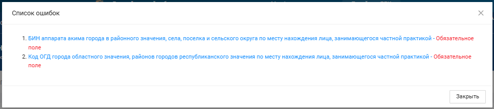 Если есть ошибки — система их покажет. Нажмите на ошибку, чтобы перейти к нужному полю.
